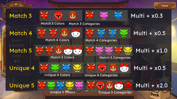 ・同じカテゴリーのお面を4つ、5つ並べると、より高い倍率を獲得できます。